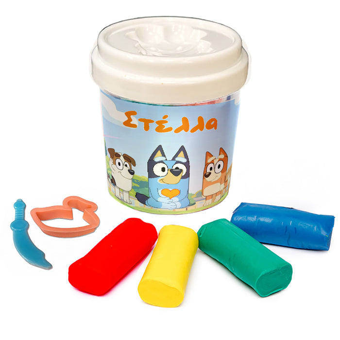 Βαζάκι με πλαστελίνες και κουπ-πατ και θέμα τη Bluey! Ιδανικό για δωράκια στους μικρούς καλεσμένους του πάρτυ: το πλαστοζυμαράκι θα τους χαρίσει ατελείωτες ώρες χαράς και δημιουργίας!