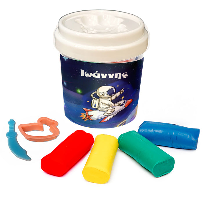 Βαζάκι με πλαστελίνες και κουπ-πατ και θέμα Διάστημα! Ιδανικό για δωράκια στους μικρούς καλεσμένους του πάρτυ: το πλαστοζυμαράκι θα τους χαρίσει ατελείωτες ώρες χαράς και δημιουργίας!