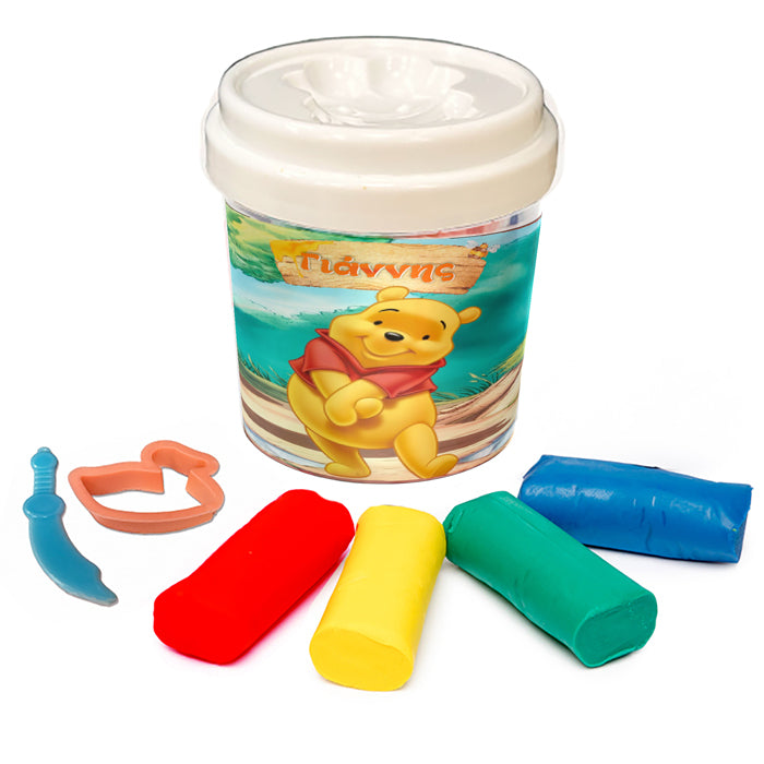 Βαζάκι με πλαστελίνες και κουπ-πατ και θέμα Winnie the Pooh! Ιδανικό για δωράκια στους μικρούς καλεσμένους του πάρτυ: το πλαστοζυμαράκι θα τους χαρίσει ατελείωτες ώρες χαράς και δημιουργίας!