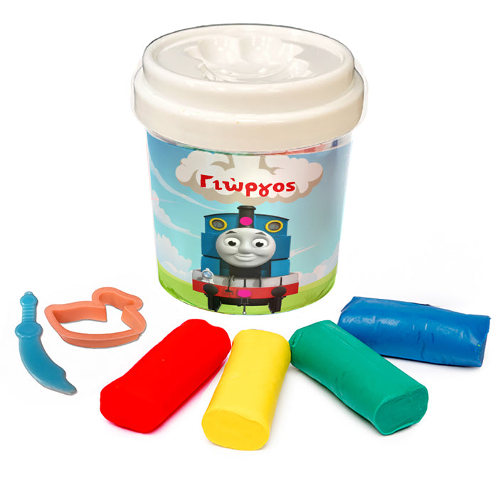 Βαζάκι με πλαστελίνες και κουπ-πατ και θέμα Τόμας το Τρενάκι! Ιδανικό για δωράκια στους μικρούς καλεσμένους του πάρτυ: το πλαστοζυμαράκι θα τους χαρίσει ατελείωτες ώρες χαράς και δημιουργίας!