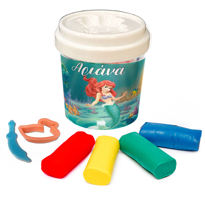 Βαζάκι με πλαστελίνες και κουπ-πατ και θέμα Γοργόνα Άριελ! Ιδανικό για δωράκια στους μικρούς καλεσμένους του πάρτυ: το πλαστοζυμαράκι θα τους χαρίσει ατελείωτες ώρες χαράς και δημιουργίας!
