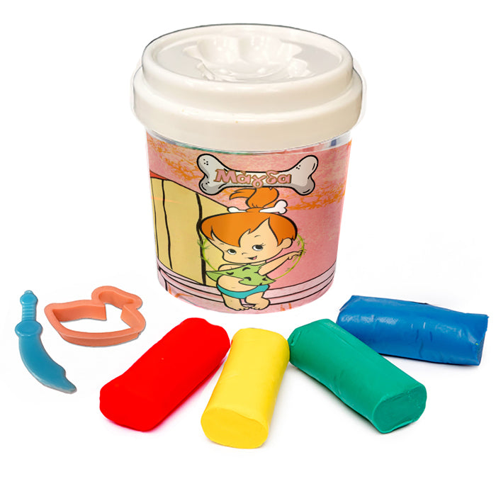 Βαζάκι με πλαστελίνες και κουπ-πατ και θέμα Σταλίτσα - Flintstones! Ιδανικό για δωράκια στους μικρούς καλεσμένους του πάρτυ: το πλαστοζυμαράκι θα τους χαρίσει ατελείωτες ώρες χαράς και δημιουργίας!