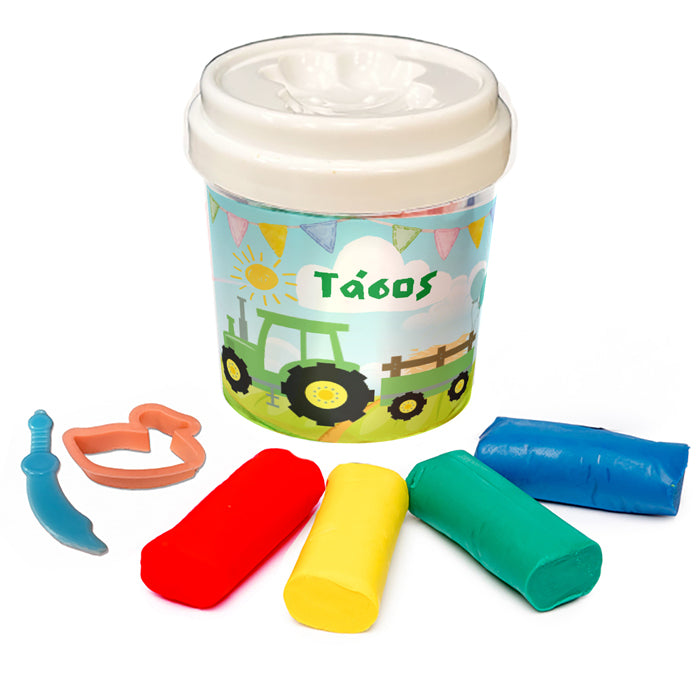 Βαζάκι με πλαστελίνες και κουπ-πατ και θέμα Τρακτέρ! Ιδανικό για δωράκια στους μικρούς καλεσμένους του πάρτυ: το πλαστοζυμαράκι θα τους χαρίσει ατελείωτες ώρες χαράς και δημιουργίας!