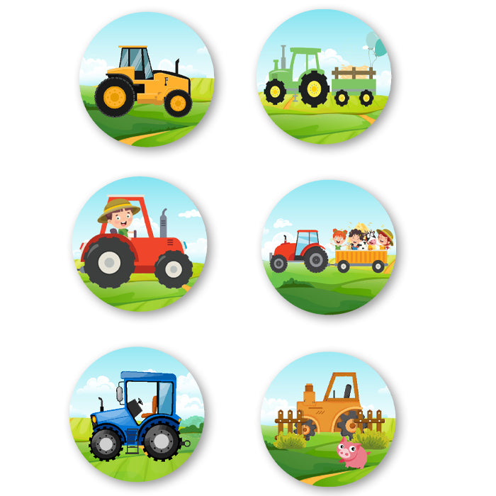 Κονκάρδες με σχέδιο Τρακτέρ! Μπορείτε να τις χαρίσετε στους καλεσμένους του πάρτυ ως ενθύμιο δώρο ή να τις φορέσετε στο πάρτυ γενεθλίων, στη θεματική εκδήλωση ή να διακοσμήσετε τα αγαπημένα σας αντικείμενα!