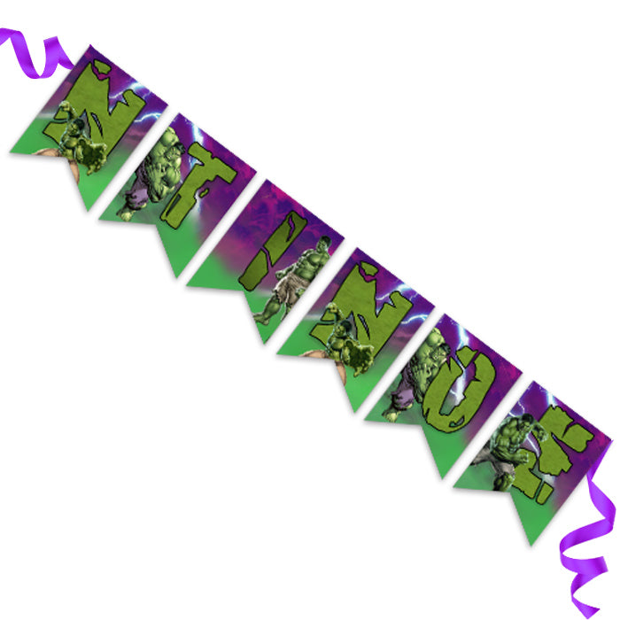Διακοσμητικά σημαιάκια με το όνομα της επιλογής σου και θέμα τον αγαπημένο σούπερ ήρωα Hulk!