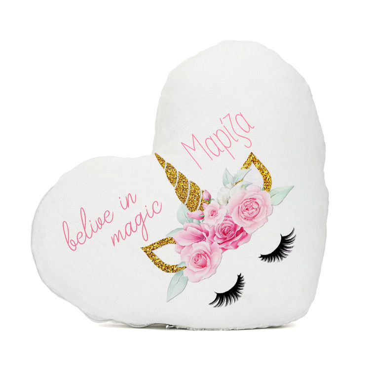 Μαξιλάρι σε σχήμα καρδιάς με σχέδιο Μονόκερο, για να προσφέρετε ως δώρο στους καλεσμένους του πάρτυ ή για μια μοναδική διακόσμηση!
