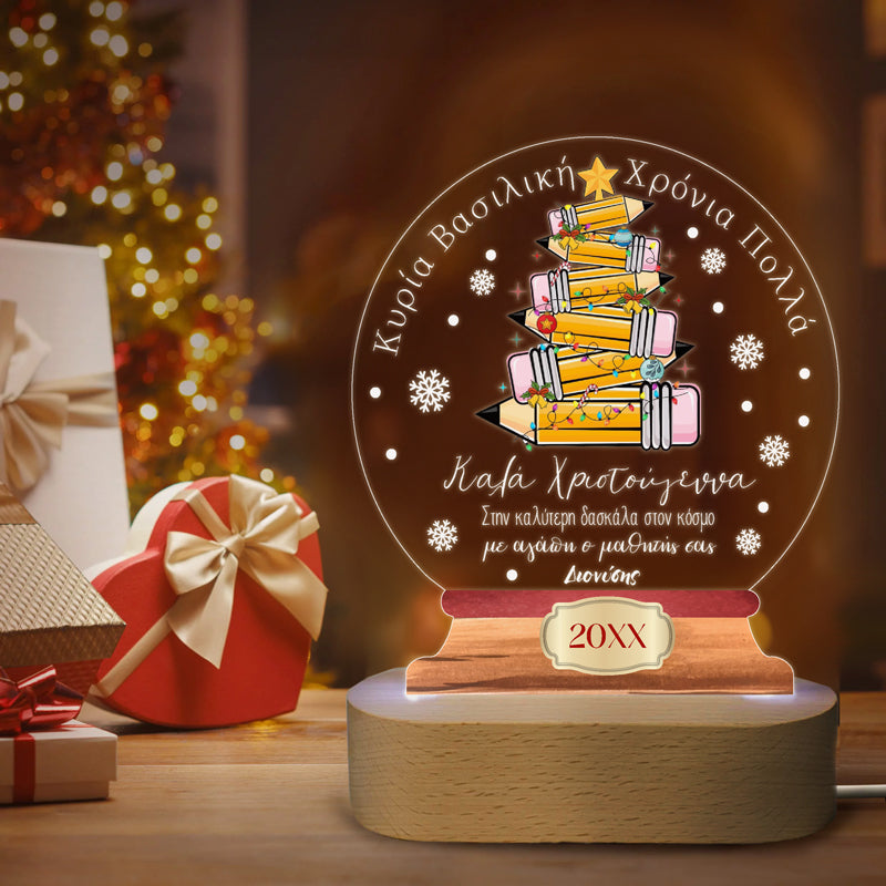 Εντυπωσιακό προσωποποιημένο φωτιστικό led με βάση και το όνομα της επιλογής σου επάνω για να χαρίσεις το πιο πρωτότυπο χριστουγεννιάτικο δώρο στον δάσκαλο ή την δασκάλα σου!