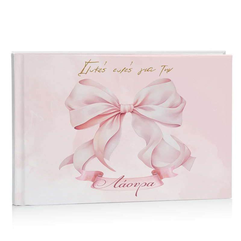 Εντυπωσιακό, χειροποίητο Βιβλίο Ευχών με θέμα Ροζ Φιόγκος, για να δώσετε μία Coquette αισθητική στη Βάπτιση του μωρού σας! Κρατήστε για πάντα τις ευχές των καλεσμένων σας σε ένα όμορφο ευχολόγιο.