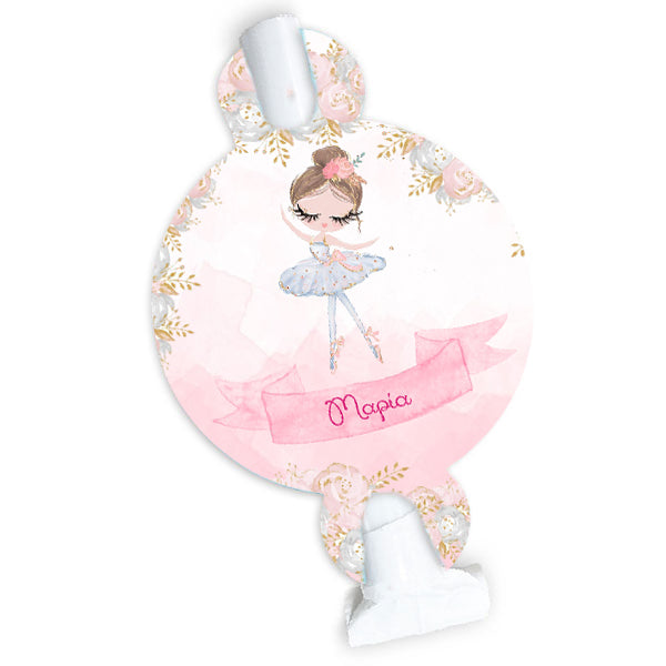 Προσωποποιημένα Blowouts με θέμα Μπαλαρίνα για να μοιράσεις στους μικρούς καλεσμένους του πάρτυ και να τους βάλεις σε γιορτινή διάθεση!