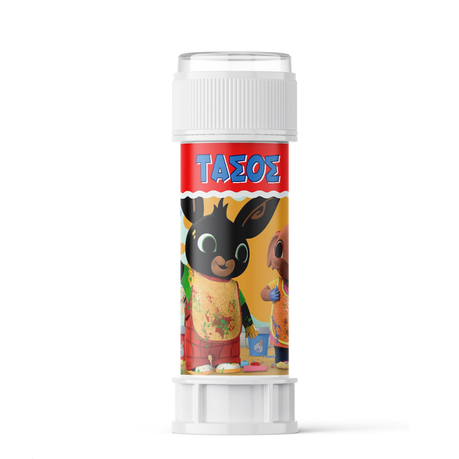 Προσωποποιημένες σαπουνόφουσκες με χάρτινο περιτύλιγμα και θέμα Bing, για να χαρίσετε ως αναμνηστικό δωράκι στους μικρούς καλεσμένους του πάρτυ.
