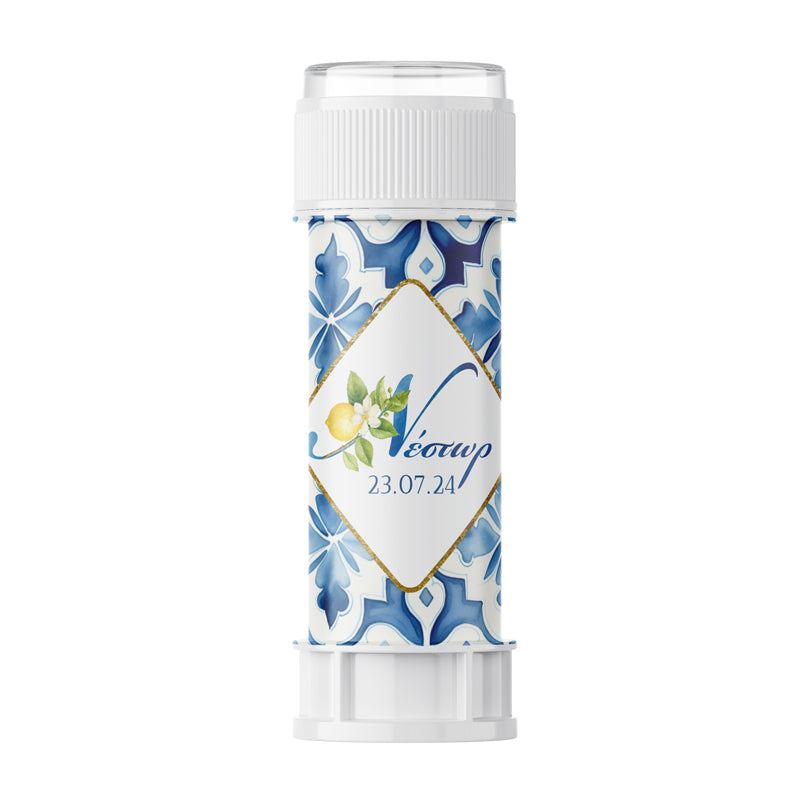 Προσωποποιημένες σαπουνόφουσκες με χάρτινο περιτύλιγμα Mediterranean Λεμόνι, για να χαρίσετε ως δωράκι στους μικρούς καλεσμένους ή να τις χρησιμοποιήσετε για τις μπομπονιέρες της βάπτισης!