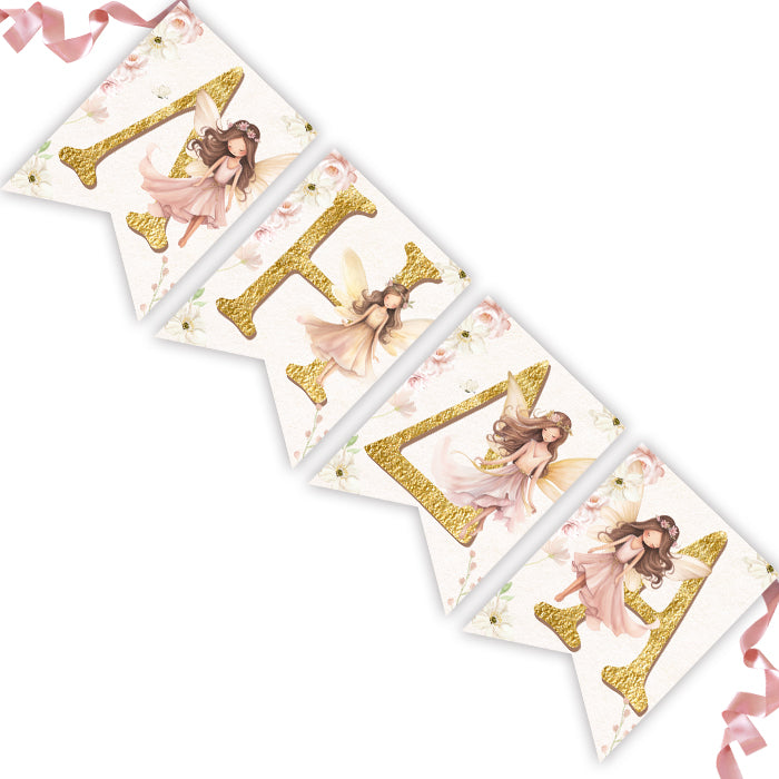 Διακοσμητικά σημαιάκια με το όνομα της μικρής σας και θέμα χρυσή Νεραϊδούλα.
