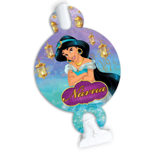 Προσωποποιημένα Blowouts με θέμα Γιασμίν για να μοιράσεις στους μικρούς καλεσμένους του πάρτυ και να τους βάλεις σε γιορτινή διάθεση!
