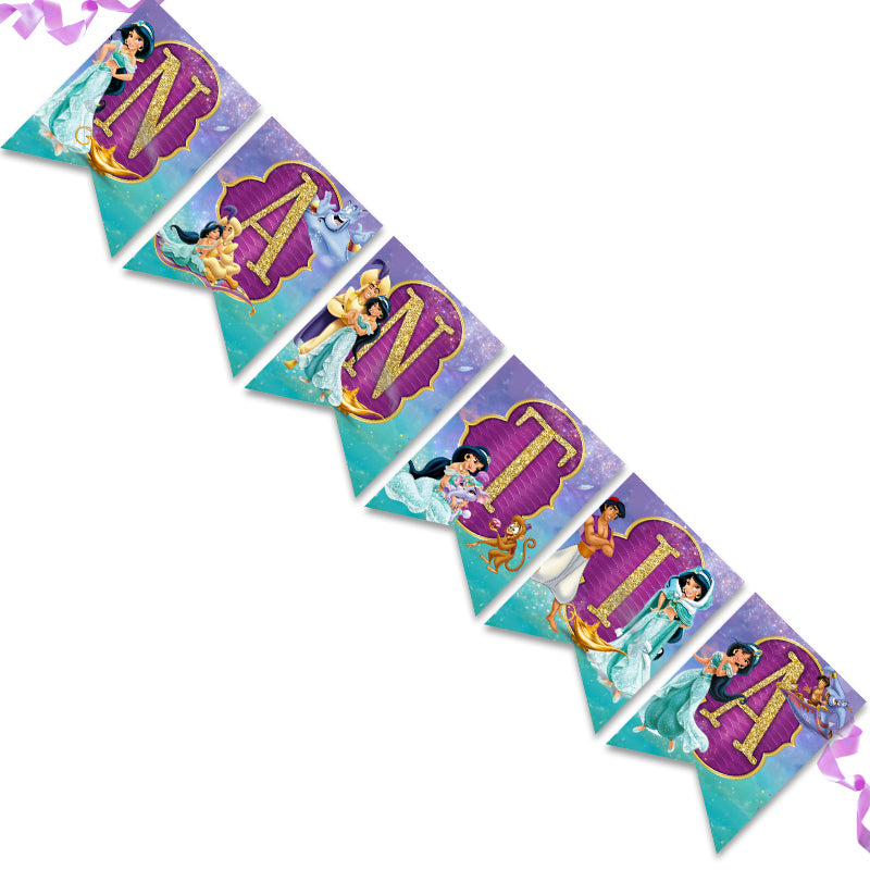 Διακοσμητικά σημαιάκια με θέμα Γιασμίν και το όνομα της επιλογής σας τυπωμένο επάνω για να στολίσετε μοναδικά τον χώρο του πάρτυ!