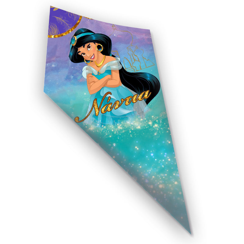 Στολίστε το candy bar ή το τραπέζι, με προσωποποιημένα χωνάκια ζαχαρωτών με θέμα την Γιασμίν για να κεραστούν οι καλεσμένοι σας!