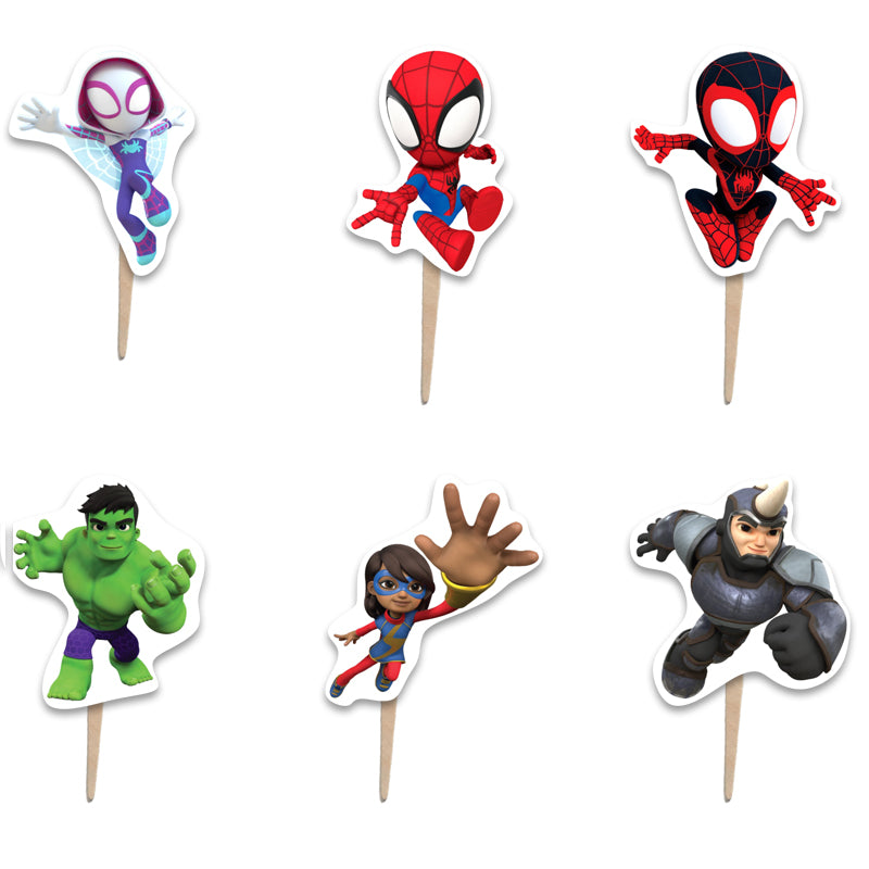 Οδοντογλυφίδες για να στολίσετε τα ζαχαρωτά και τα cupcake του μπουφέ με θέμα Spidey!