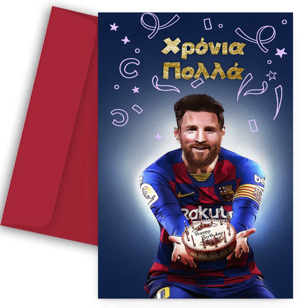 Ευχετήρια κάρτα γενεθλίων «Χρόνια Πολλά» με τον αγαπημένο ποδοσφαιριστή Μέσσι για να ευχηθείς στον φίλο σου που είναι μεγάλος θαυμαστής του.