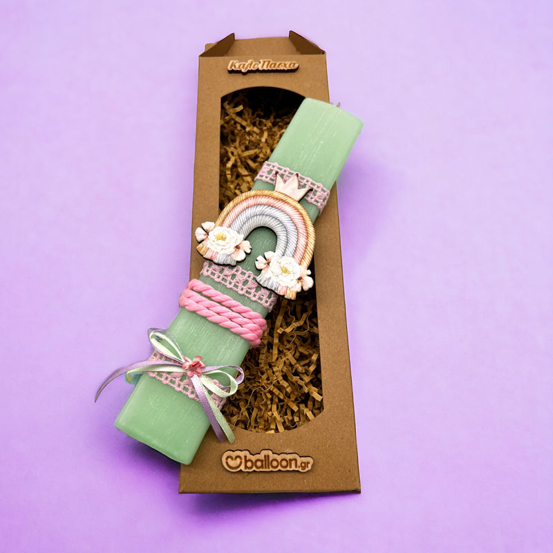 Πασχαλινή Αρωματική Λαμπάδα Ουράνιο Τόξο, με υπέροχα υλικά και κορδέλες, που θα κλέψει τις εντυπώσεις!