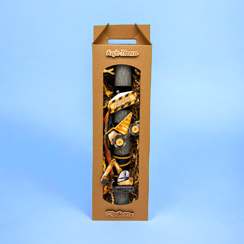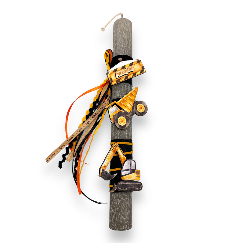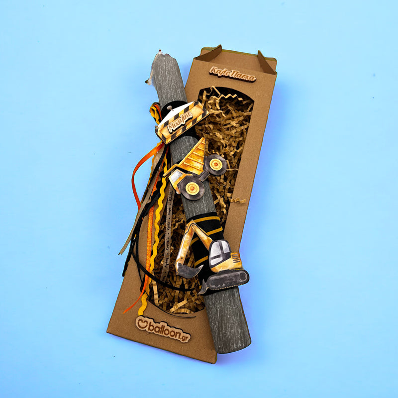 Πασχαλινή Αρωματική Λαμπάδα Εργοτάξιο, με υπέροχα υλικά και κορδέλες, που θα κλέψει τις εντυπώσεις και θα γεμίσει με χαμόγελα νονούς και παιδιά!