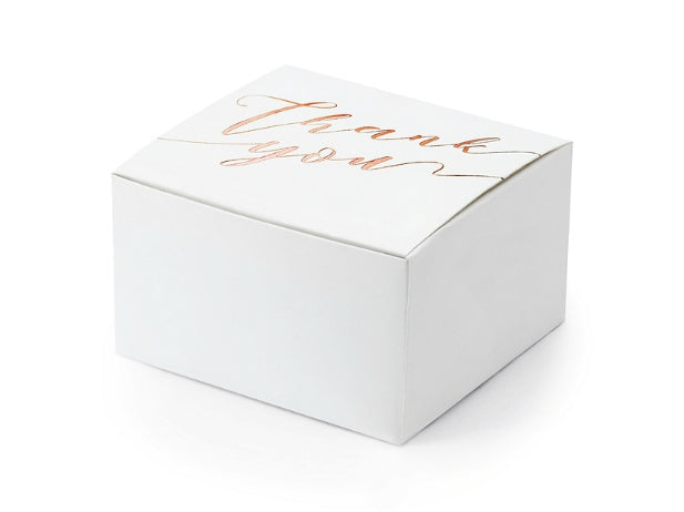 Λευκό κουτάκι με ροζ χρυσό γράμματα Thank You, ιδανικό για μπομπονιέρα ή για τα δωράκια του πάρτυ!