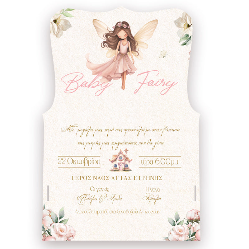 Εντυπωσιακό προσκλητήριο για τη βάπτιση του μωρού σας, κοπτικό σχέδιο που κλείνει με κορδέλα στο θέμα τη Νεραϊδοχώρα!