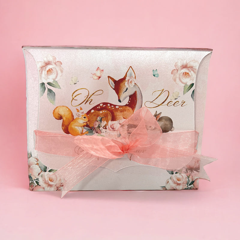 Εντυπωσιακό προσκλητήριο για τη βάπτιση του μωρού σας, κοπτικό σχέδιο που κλείνει με κορδέλα στο θέμα Ελαφάκι Φλοράλ!