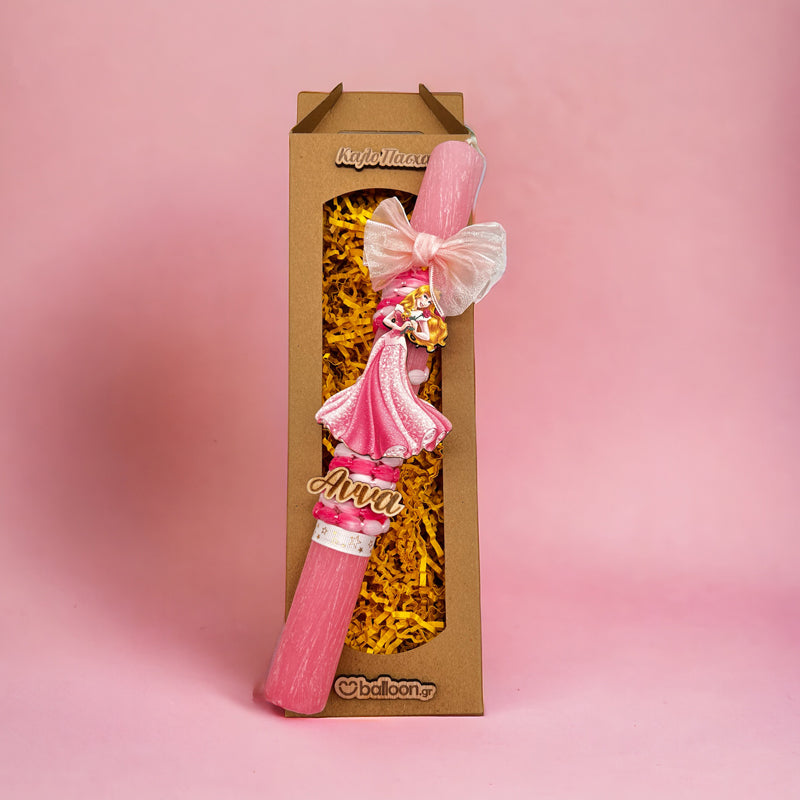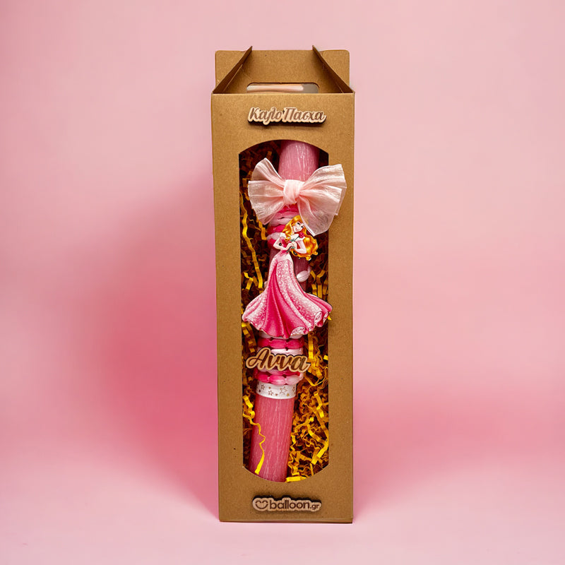 Πασχαλινή Λαμπάδα Αρωματική Ωραία Κοιμωμένη, σε ρομαντικό Προσωποποιημένο σχέδιο με υπέροχα υλικά και κορδέλες, που θα κλέψει τις εντυπώσεις και θα γεμίσει με χαμόγελα νονούς και παιδιά!
