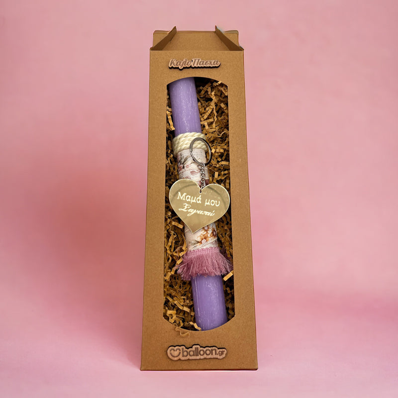 Πασχαλινή Αρωματική Λαμπάδα Χρυσό Plexi μπρελόκ Μαμά μου Σ'αγαπώ, με υπέροχα υλικά και κορδέλες, που θα κλέψει τις εντυπώσεις!