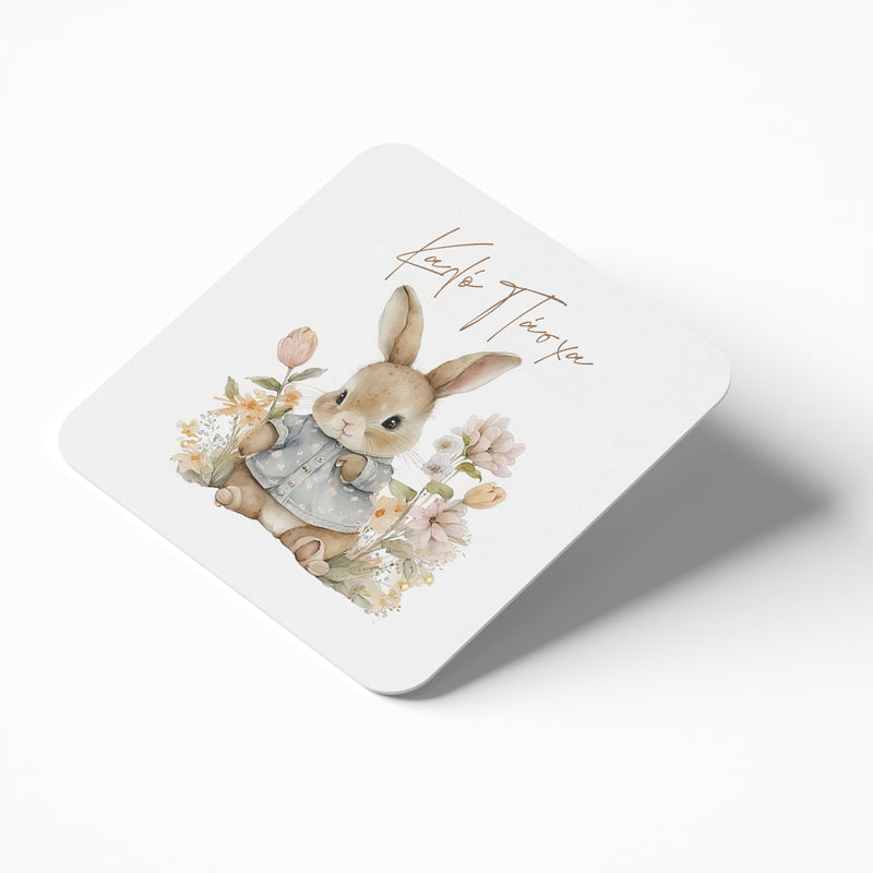 Σουβέρ από φελλό με Φλοράλ Κουνελάκι και μήνυμα Καλό Πάσχα. Ιδανικό για να το χαρίσεις σαν δώρο και να βάλεις σε πασχαλινή διάθεση τα αγαπημένα σου πρόσωπα.
