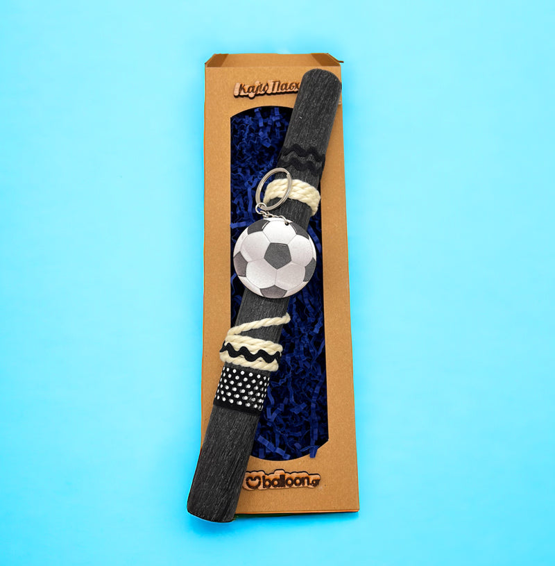 Πασχαλινή Αρωματική Λαμπάδα μπρελόκ Ποδόσφαιρο, με υπέροχα υλικά και κορδέλες, που θα κλέψει τις εντυπώσεις!