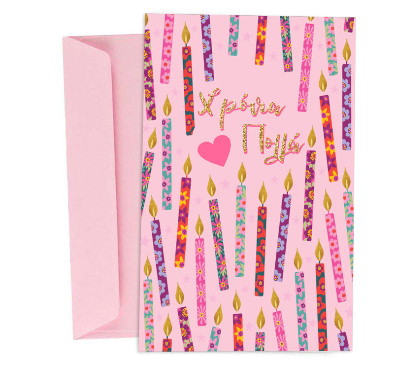 Ευχετήρια κάρτα γενεθλίων "Χρόνια Πολλά"με χαριτωμένο girly σχέδιο για να ευχηθείς με τον πιο γλυκό τρόπο στους αγαπημένους σου!