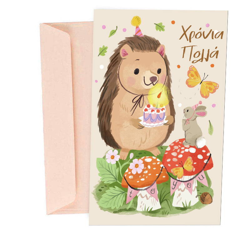 Ευχετήρια κάρτα γενεθλίων "Χρόνια Πολλά"με χαριτωμένο σκαντζοχοιράκι για να ευχηθείς με τον πιο γλυκό τρόπο στους αγαπημένους σου!