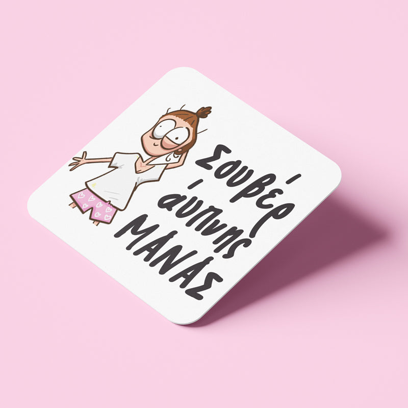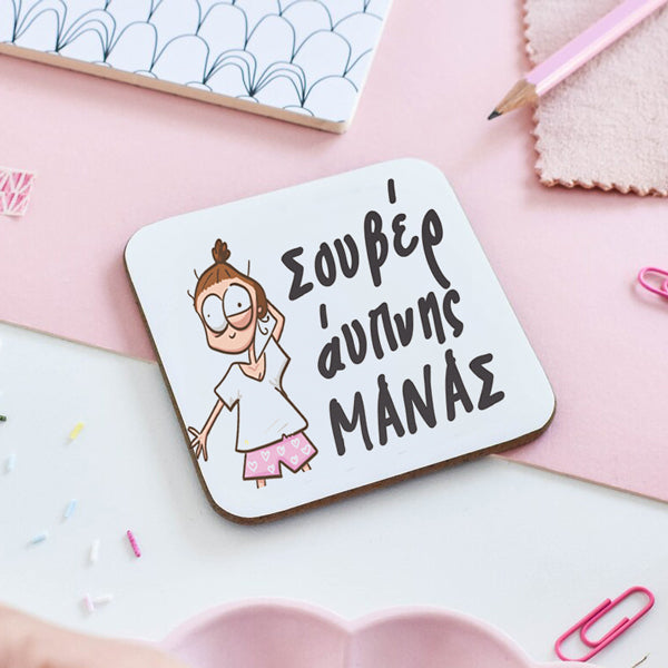 Σουβέρ από φελλό με σχέδιο "Άυπνη Μάνα". Κάνε το δώρο στην μαμά σου και δείξε της πόσο πολύ την εκτιμάς, με τον πιο χιουμοριστικό τρόπο!
