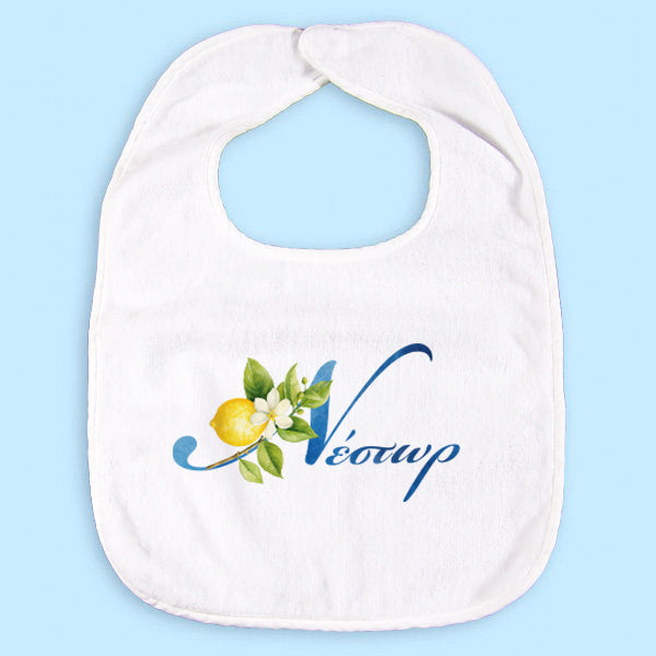 Προσωποποιημένη σαλιάρα με θέμα Mediterranean Λεμόνι για να φορά το γλυκό μωράκι σας!