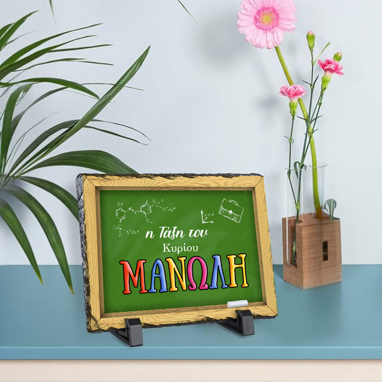Εντυπωσιακή πέτρινη κορνίζα σε σχέδιο πίνακα τάξης και με εκτυπωμένο το όνομα του δασκάλου σου! Σε αυτό το προϊόν, συνδυάζετε τη σύγχρονη τεχνολογία εκτύπωσης σε ένα κομμάτι φυσικής πέτρας.