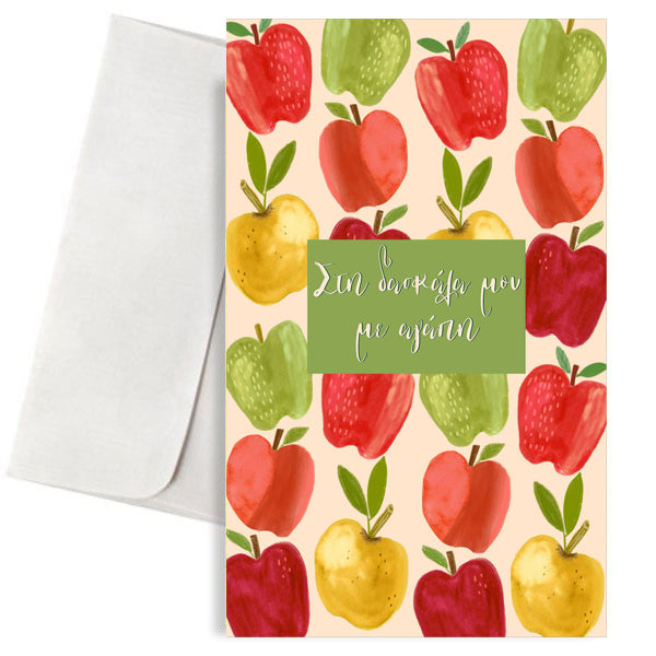 Ευχετήρια Κάρτα με σχέδιο μηλαράκια, για να χαρίσετε στην αγαπημένη σας δασκάλα, ώστε να την ευχαριστήσετε για όλα όσα σας έμαθε!