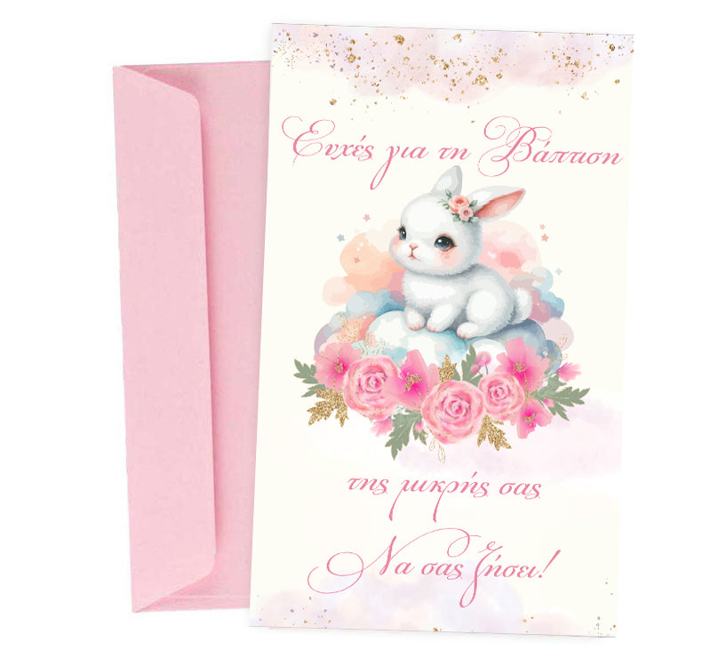 Ευχετήρια Κάρτα Βάπτισης - Φλοράλ Κουνελάκι