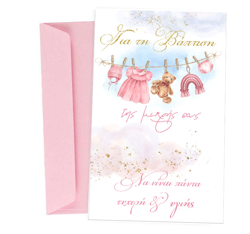 Ευχετήρια Κάρτα Βάπτισης - ροζ Μπουγάδα