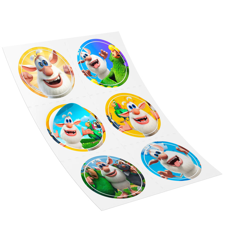 Στρογγυλά αυτοκόλλητα με σχέδιο Booba για να διακοσμήσεις τα αντικείμενα του πάρτυ ή να τα δώσεις ως ενθύμιο δώρο στους μικρούς καλεσμένους!