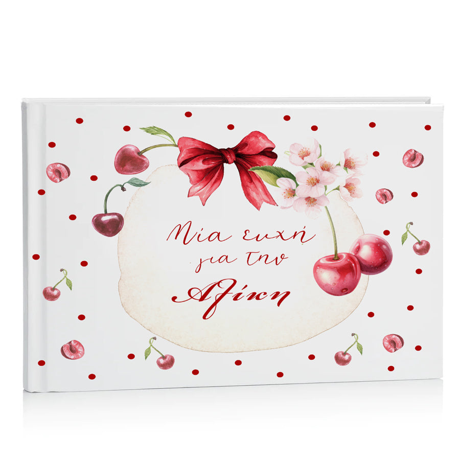 Εντυπωσιακό, χειροποίητο Βιβλίο Ευχών με σχέδιο Κεράσι για τη βάπτιση του μωρού σας! Κρατήστε για πάντα τις ευχές των καλεσμένων σας σε ένα όμορφο ευχολόγιο.