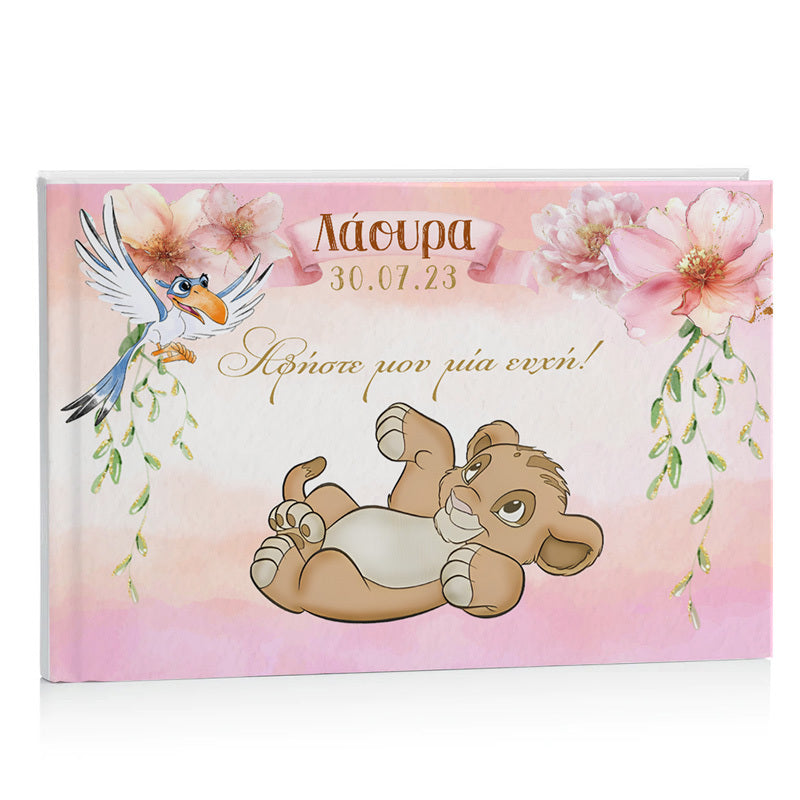 Εντυπωσιακό, χειροποίητο Βιβλίο Ευχών με σχέδιο Λιονταράκι για τη βάπτιση του μωρού σας! Κρατήστε για πάντα τις ευχές των καλεσμένων σας σε ένα όμορφο ευχολόγιο.