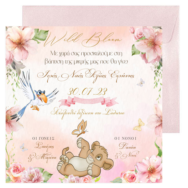 Προσκλητήριο Βάπτισης με θέμα Λιονταράκι, για να μοιράσετε στους αγαπημένους σας για τη βάπτιση του μικρού σας και να κλέψετε τις εντυπώσεις.