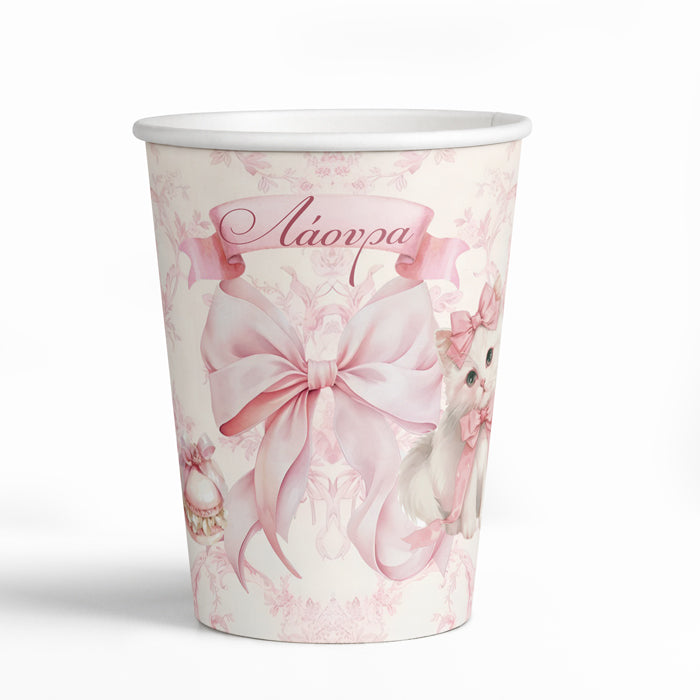 Ποτήρια Με Όνομα με θέμα Ροζ Φιόγκος & coquette αισθητική για να κεράσετε τους καλεσμένους σας στο μπουφέ της βάπτισης ή του πάρτυ!