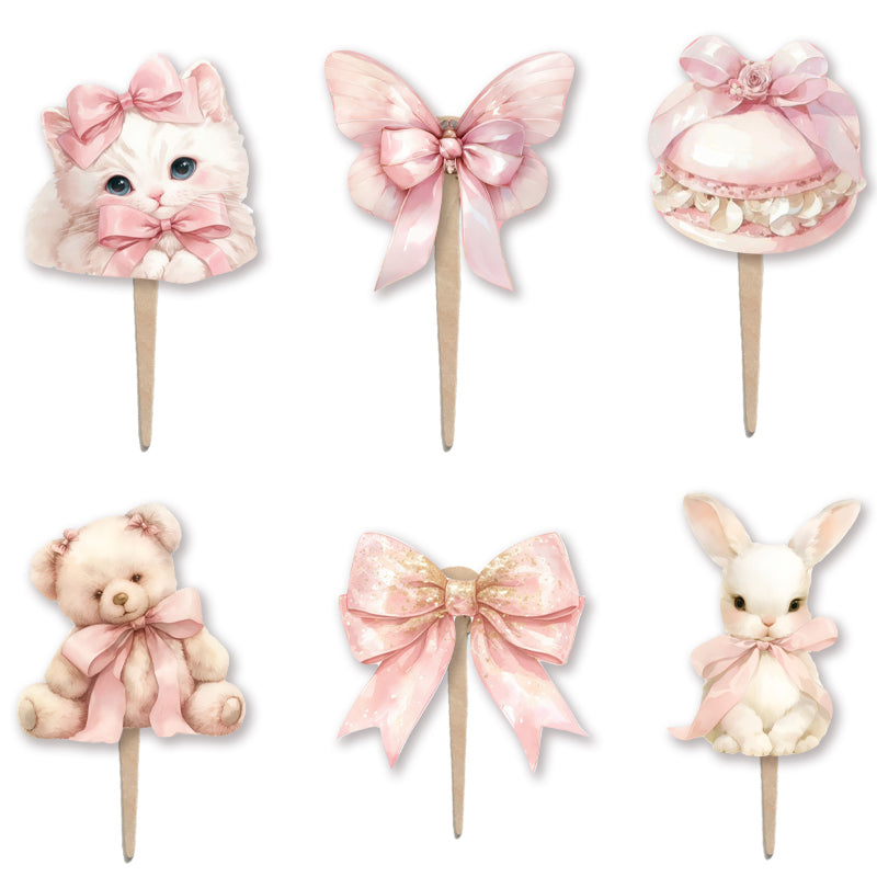 Topper-Οδοντογλυφίδες Ροζ Φιόγκος (6 τεμ) , για να στολίσετε τα ζαχαρωτά και τα φαγητά του θεματικού πάρτυ η βάπτισης και να δώσετε μία coquette αισθητική!