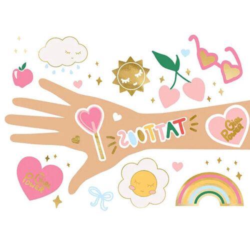 Τατουάζ Ουράνιο τόξο με κοριτσίστικα σχέδια, για τις μικρές καλεσμένες του πάρτυ!