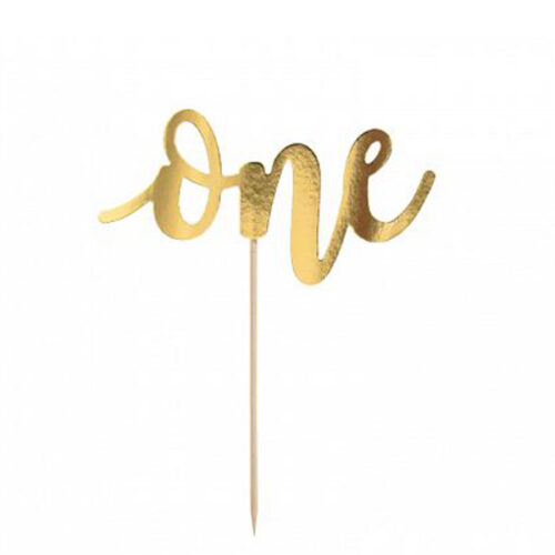 Πώς μία απλή τούρτα μπορεί να γίνει εύκολα λαμπερή; Ένα όμορφο στολίδι στην κορυφή είναι η απάντηση! Το χρυσό topper One, είναι έτοιμο να σκαρφαλώσει στην τούρτα σας και να την απογειώσει.