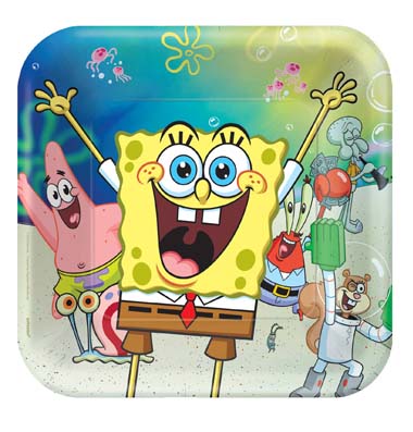 Τετράγωνα πιάτα φαγητού με τον Μπομπ Σφουγγαράκη, για το μπουφέ του πάρτυ γενεθλίων!
