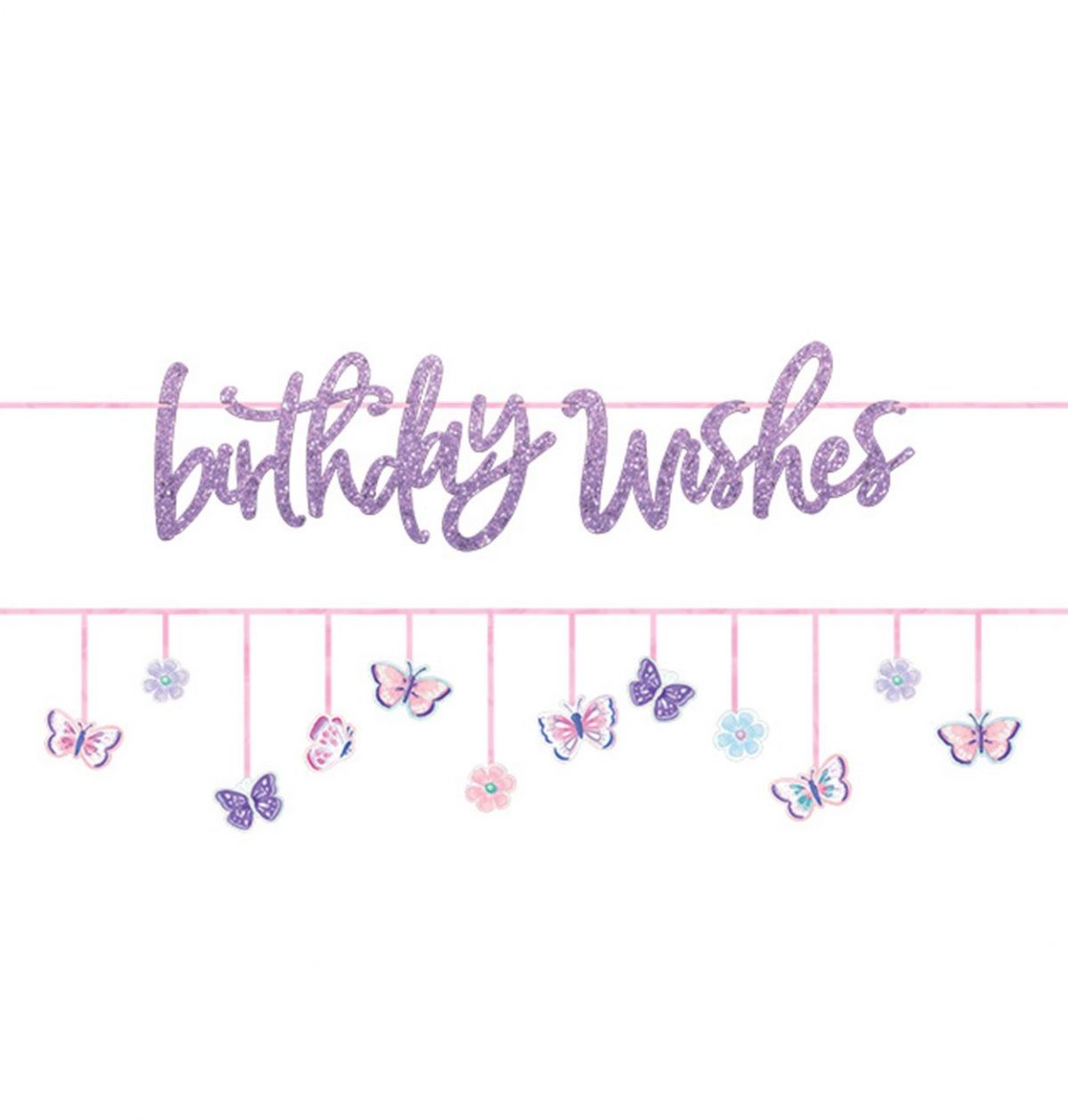 Διακοσμητικό Banner με πεταλούδες και μήνυμα Birthday Wishes, για το στολισμό του θεματικού πάρτυ!