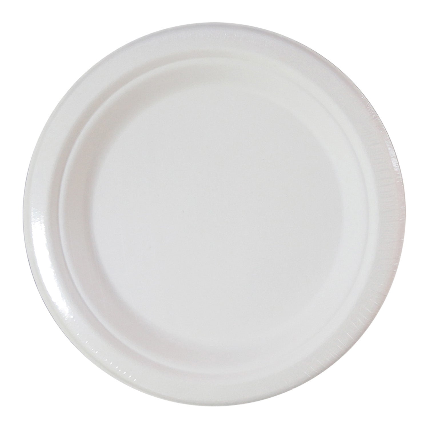 Χάρτινα λευκά πιάτα από ζαχαροκάλαμο ιδανικά για πάρτυ, catering ή χρήση στο σπίτι.