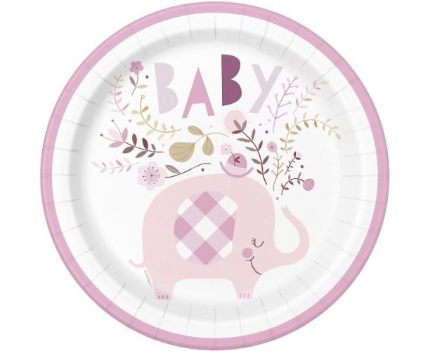 Πιάτα για πάρτυ Baby Ελεφαντάκι σε ροζ αποχρώσεις.